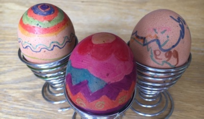 14. Easter is coming, so hard boil some eggs and enjoy painting them with paints or felt tips. Then later you can enjoy them for lunch perhaps as part of an indoor picnic (see #38).